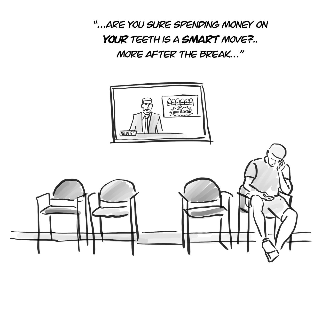 You can choose between straightening your teeth and buying a new home theatre system. Once a patient enters a practice, there should be no other images or ads to spend elsewhere. Think of removing HGTV or the news playing in the waiting room, and get rid of magazines with flashy material goods. The message, images, and senses should be all pointed to them starting treatment today and the investment treatment provides. Remove all discretionary possibilities upon entering.