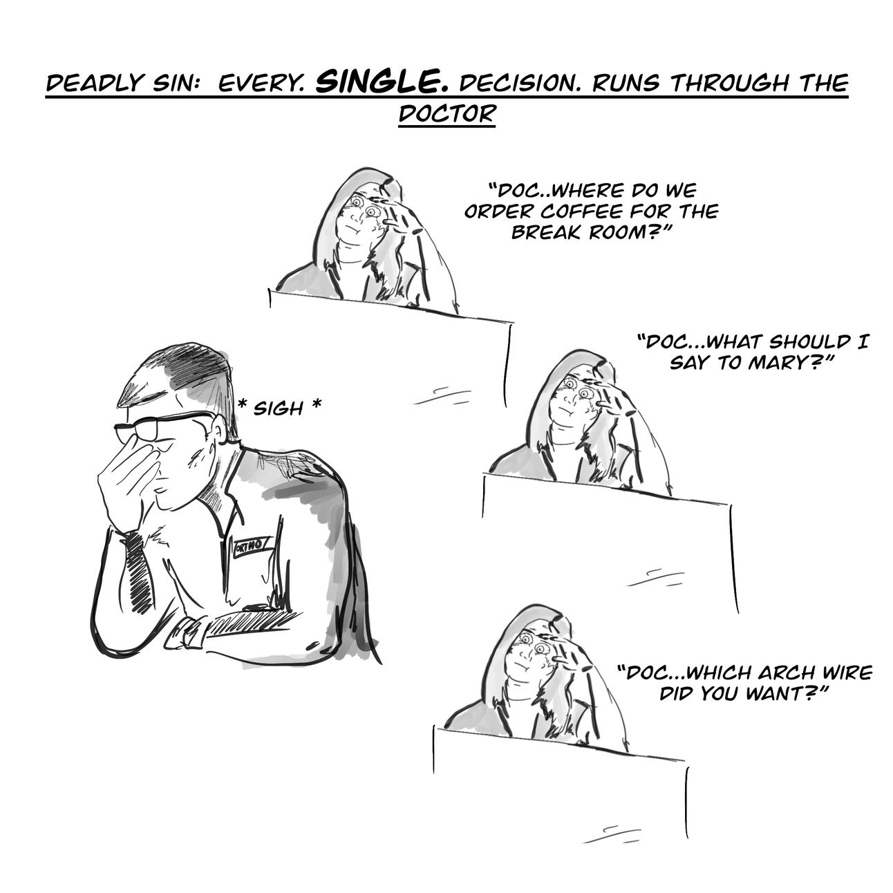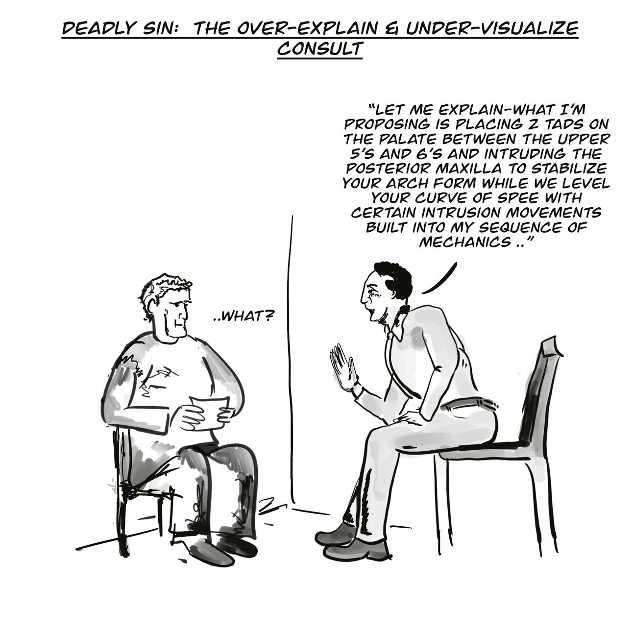 Instead of writing this week, I’m taking the advice given, and using visuals (yes.. I sketch these) of seven common practice sins collected from orthodontists, consultants, one speaker, and a fellow sales professional to help make your practice that much better. Enjoy.